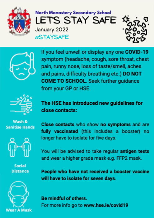 As we continue to work towards keeping our school community safe. We draw your attention to new guidance issued by the HSE and HPSC regarding close contacts.